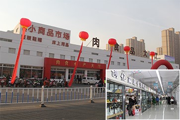 肉食水產交易大廳于2013年12月18日建成,由東西兩個大廳構成,共156個攤位。東廳以經營牛肉、羊肉、凍品為主,分為:鮮肉區、熟食區、凍品區、活魚區;西廳以經營蔬菜、副食、調料為主,肉菜搭配已經形成了生鮮批零大廳。多年來,肉食大廳嚴格實施市場準入制度,建立系統的安全可追溯體系,規定只有符合具有全國知名豬肉生產加工品牌、公眾普遍認可的生產廠家,且經營證照齊全、經營規范的大的經銷商才可以入市經營,否則一律不準入場經營,同時率先引入健康安全的“千喜鶴”冷鮮肉,凈化了肉食品消費環境,真正實現了優質優價,使美通市場成為經營中高端肉市場,成為老百姓信得過的放心肉市場,經營效益穩步提升,對引導百姓健康消費、引領呼市肉食品市場健康發展起到了帶頭作用。